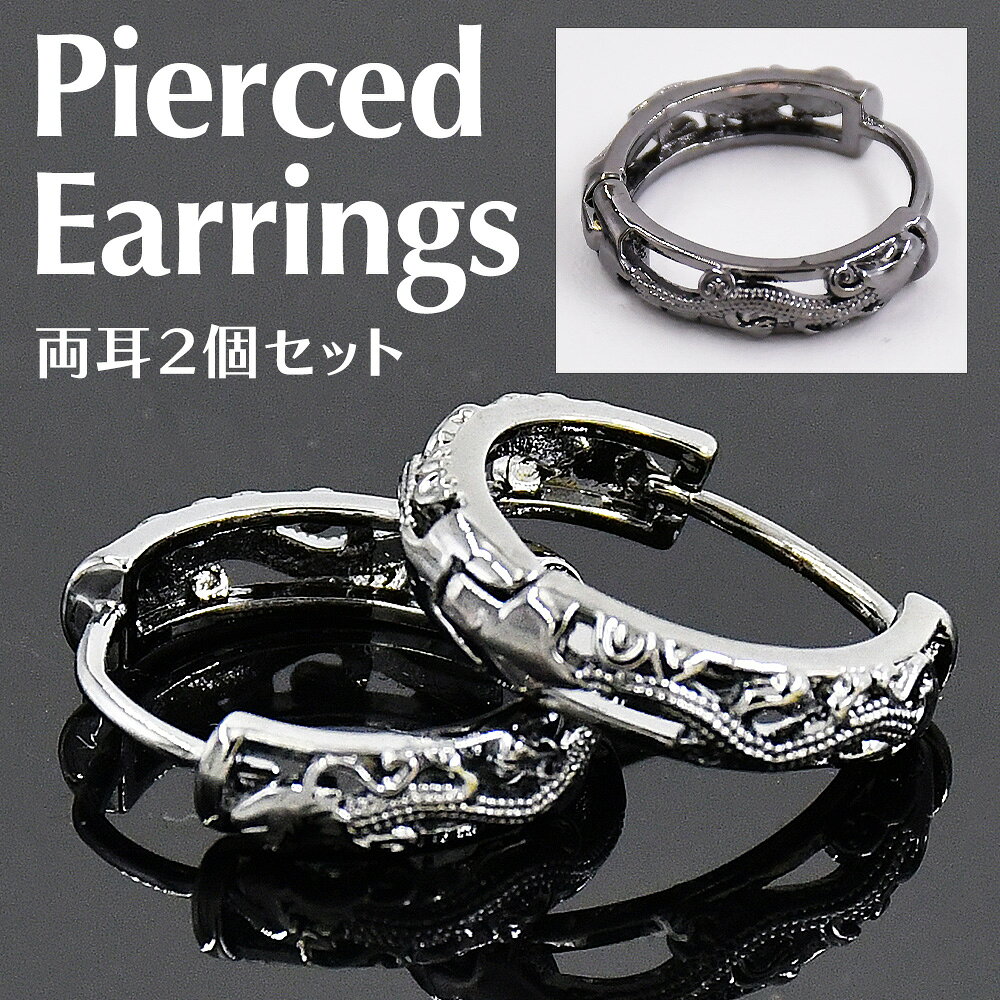 蛇・龍の尻尾のような装飾が施されたフープピアス2個セットとなります。 髪の毛や洋服にひっかかりにくい、カチッと留まる中折れ式。 男女問わず身につけることができます。コーディネートのワンポイントに。 【サイズ】 内径:約12mm 外径:約17mm(最大) 【重量】 約1.5g(1個あたり) 【素材】 シルバー 【カラー】 シルバー お支払い・配送について ・ご入金確認は楽天市場にて処理されております。前払い決済をご指定された場合はご入金確認後の発送となります。・お支払い期日を過ぎた場合は自動でキャンセルさせていただきます。お支払いについてはこちらをご参考くださいませ。・不明点や配送に問題が生じた場合は事前にご連絡をさせていただきますのでご了承ください。(長期間ご連絡がとれない際はやむを得ずキャンセルとさせていただきます)・当店では領収書の郵送対応は原則的にお受け付けしておりません。ご所望の際はご連絡ください。