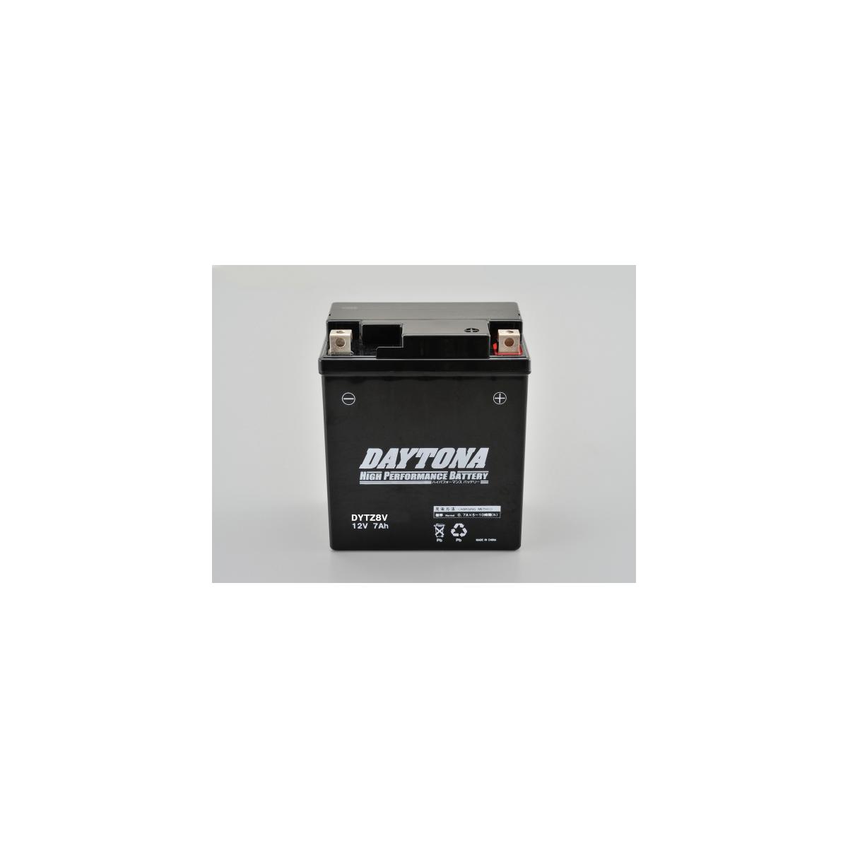 メーカー名:デイトナメーカー品番:95390説明瞬間放電能力も高く、充電時間も短くなった、高性能バッテリー。電解液が注入済みのため、開封後すぐに使用できます。DYTZ8Vは、アイドリングストップ装備車両に対応した、高耐久バッテリー。●本体質量:2.34kg●10時間率容量:12V7Ah●ケースサイズ:幅114×高さ130×奥行70mm備考●液入り充電済み注意事項※3ヶ月以上未使用で保管している場合や、端子電圧が12.4V未満の場合は、バッテリー本体に記載されている充電方法に従って必ず充電してください。